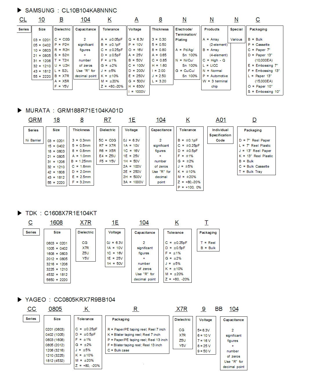 貼片電容型號規(guī)格命名規(guī)則: