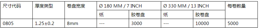 0805 | 2.0±0.20 | 1.25±0.20 | 1.25±0.20 | 0.25 | 0.75 | 0.55 |